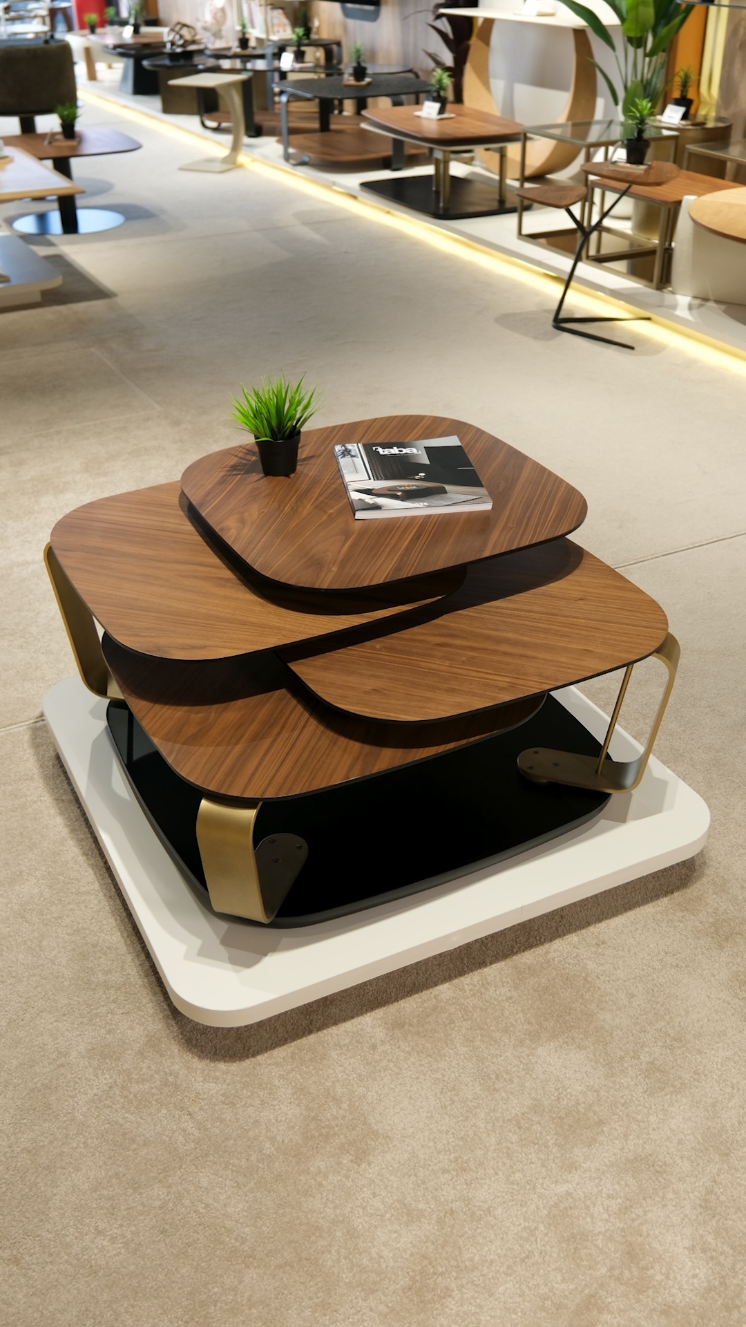Bentley Orta Sehpa, modern tasarımı ve çok renkli seçenekleriyle yaşam alanlarınıza şıklık ve fonksiyonellik kazandırır. Siyah, traverten, meşe ve ceviz renk seçenekleri ile dekorasyonunuza uyum sağlar. Pirinç rengi metal ayakları ve MDF üst tablası ile hem dayanıklı hem de estetik bir görünüm sunar. Açılır mekanizması sayesinde kullanım alanınızı genişletir ve ihtiyaca göre farklı boyutlarda kullanım imkanı sağlar.