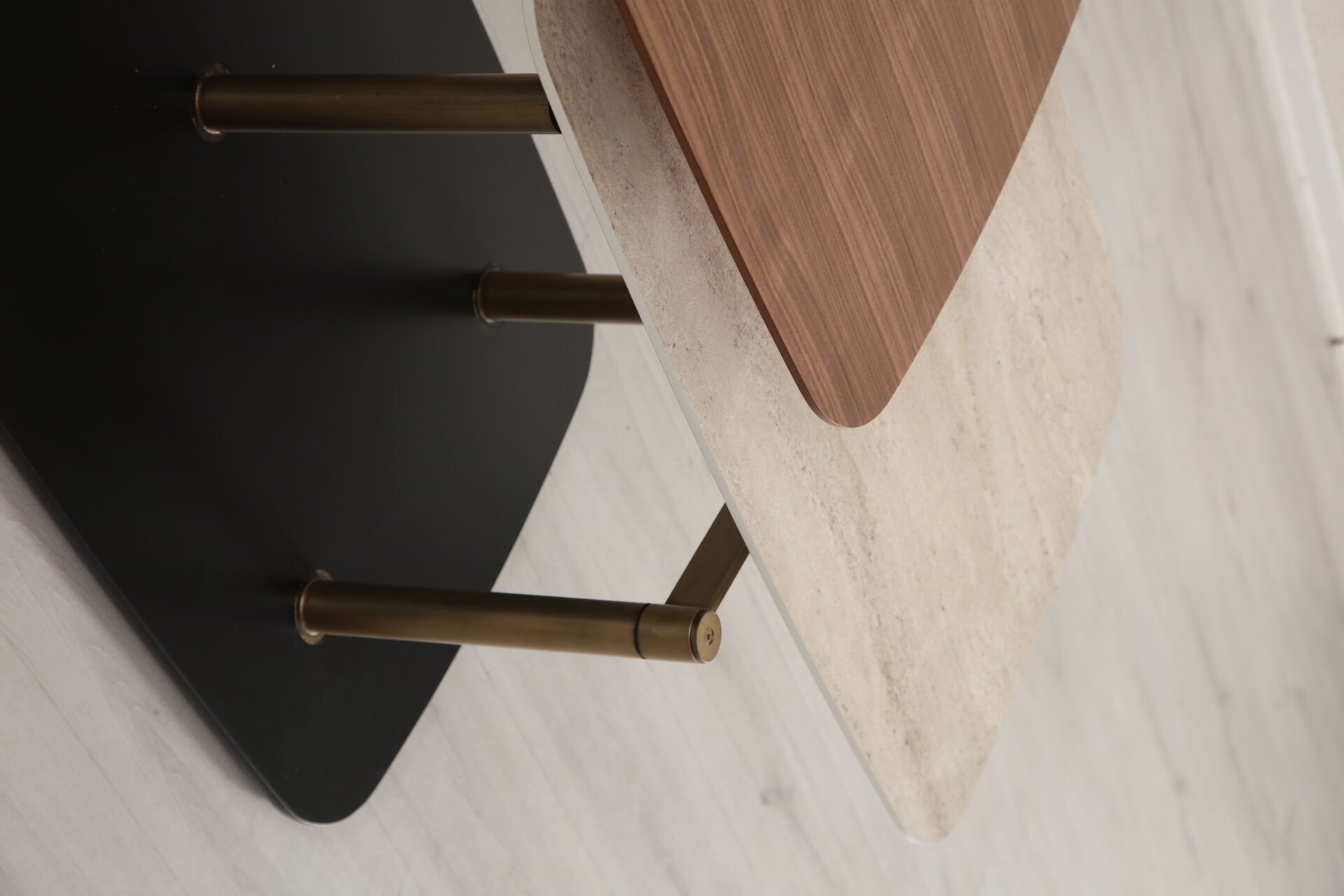 Şık ve çağdaş tasarımıyla yaşam alanlarınıza lüks bir dokunuş katıyor. Ceviz tonlarındaki üst tabla ve prinç ayak detaylarıyla dikkat çekerken, geniş kullanım yüzeyi ile hem estetik hem fonksiyonel bir çözüm sunuyor.