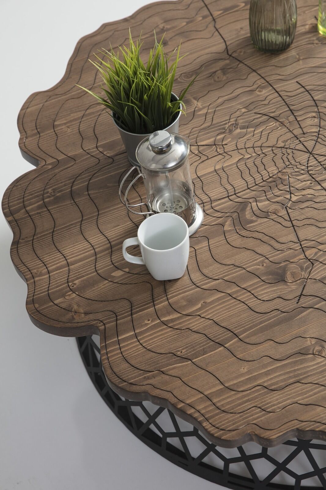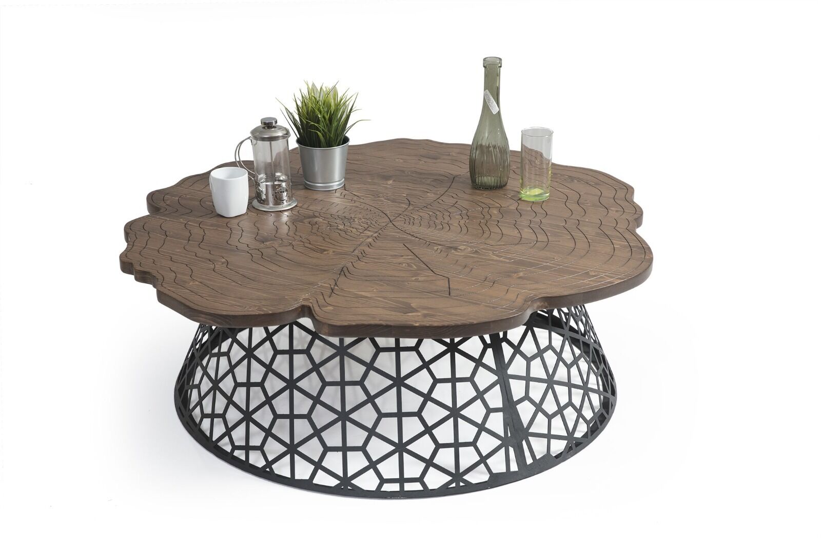Doğal ahşap dokusu ve modern ayak yapısıyla yaşam alanlarınıza sıcaklık ve karakter katacak olan Kütük Orta Sehpa; ceviz rengi tabla görünümü, siyah metal ayakları ve ladin üst tabla malzemesiyle hem rustik hem çağdaş bir atmosfer yaratır.
