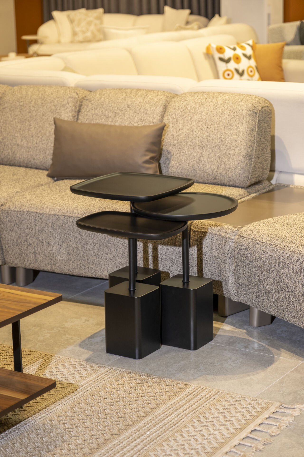 Noir Zigon Sehpa – 3’lü Modern Siyah Zigon Sehpa 40x40 cm