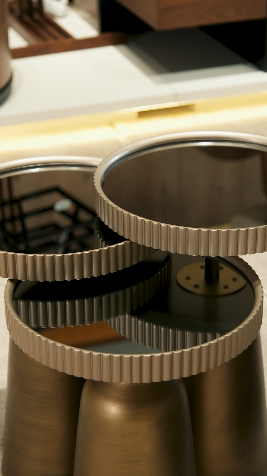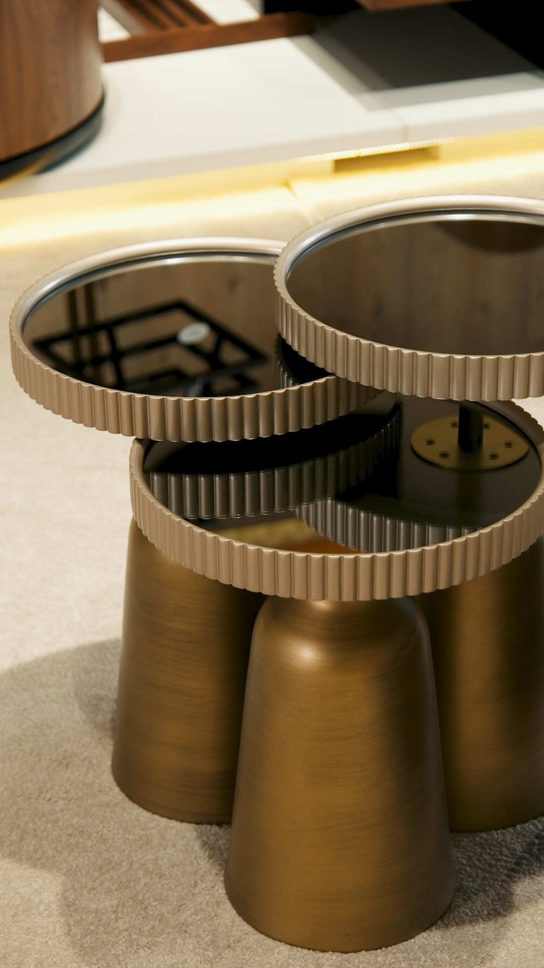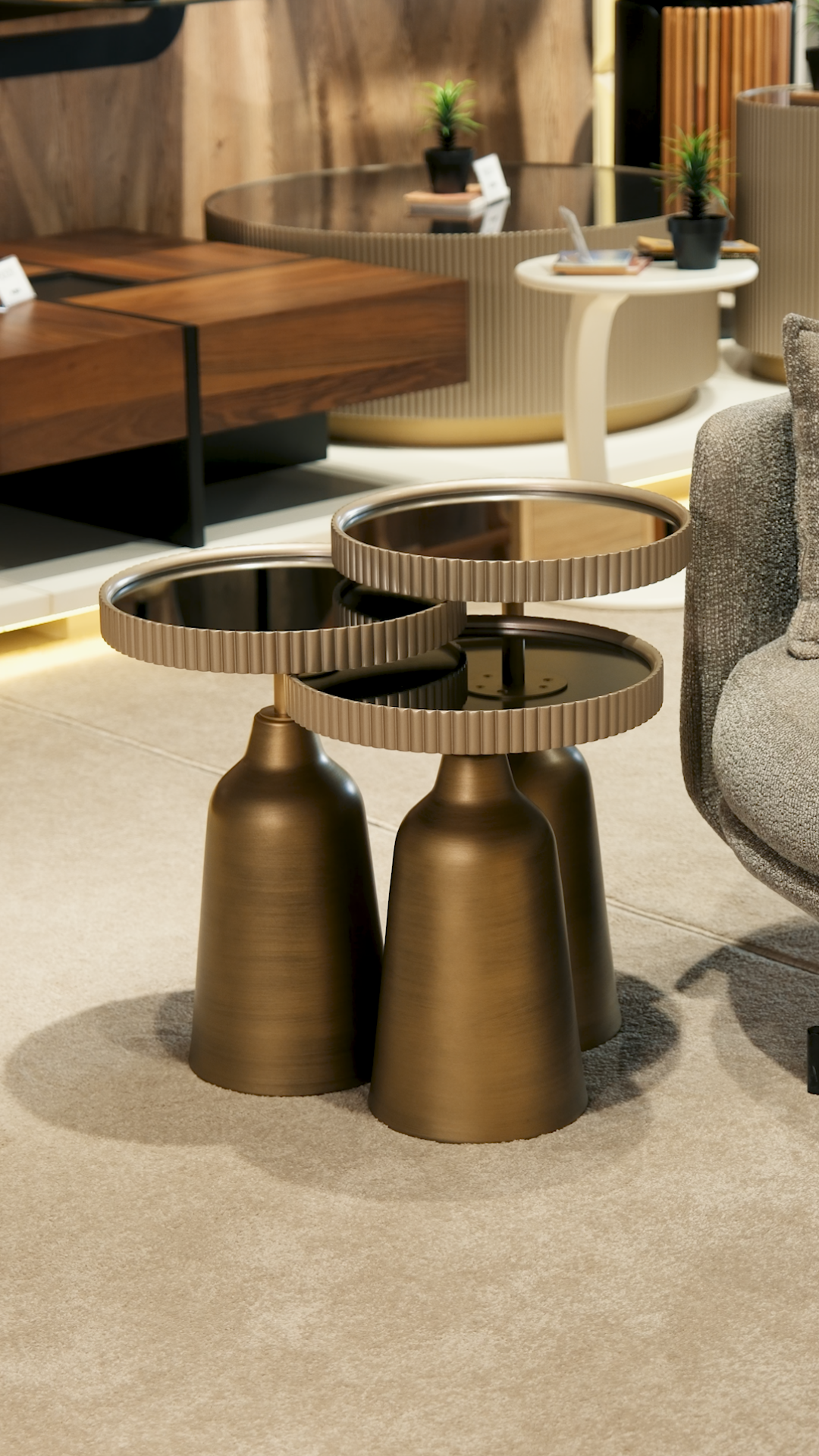 Zarif vizon tonlu üst tablası ve pirinç detaylı metal ayaklarıyla yaşam alanlarınıza sıcaklık ve modern bir şıklık kazandıran Olivia Zigon Sehpa (Vizon), üç farklı boyuttaki sehpa setiyle hem yerden tasarruf sağlar hem de estetik bir görünüm sunar. Şık ve sade tasarımıyla salon, oturma odası veya ofis gibi alanlarda dekoratif tamamlayıcı olarak öne çıkar.
