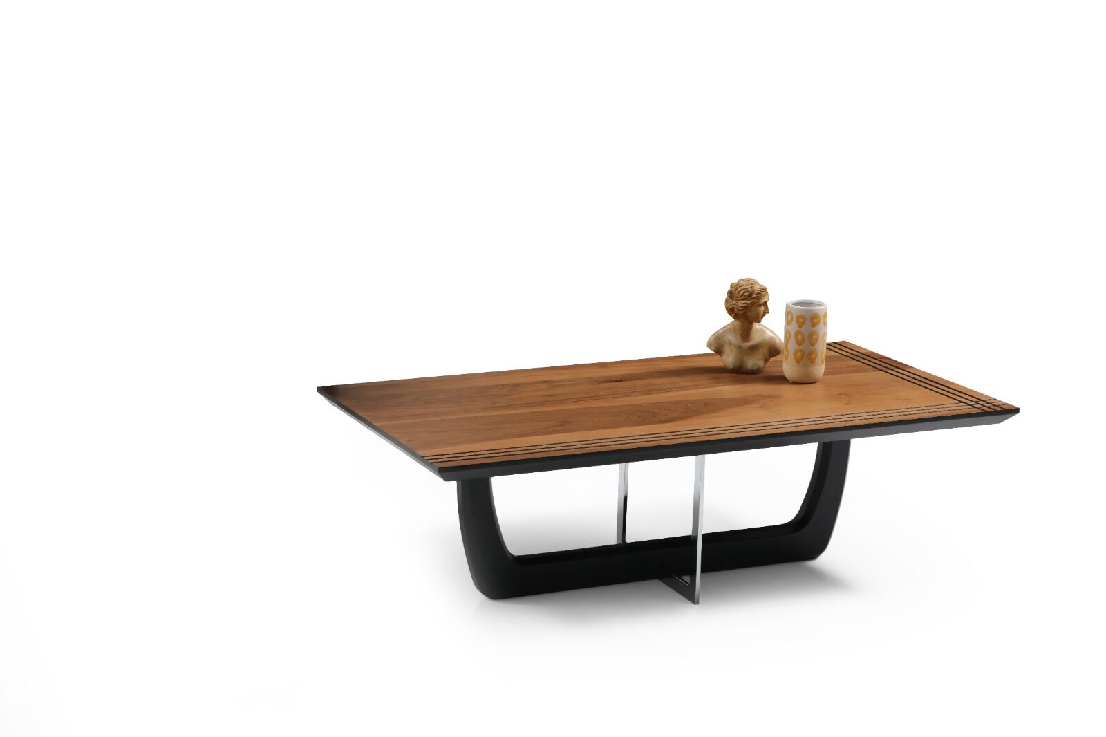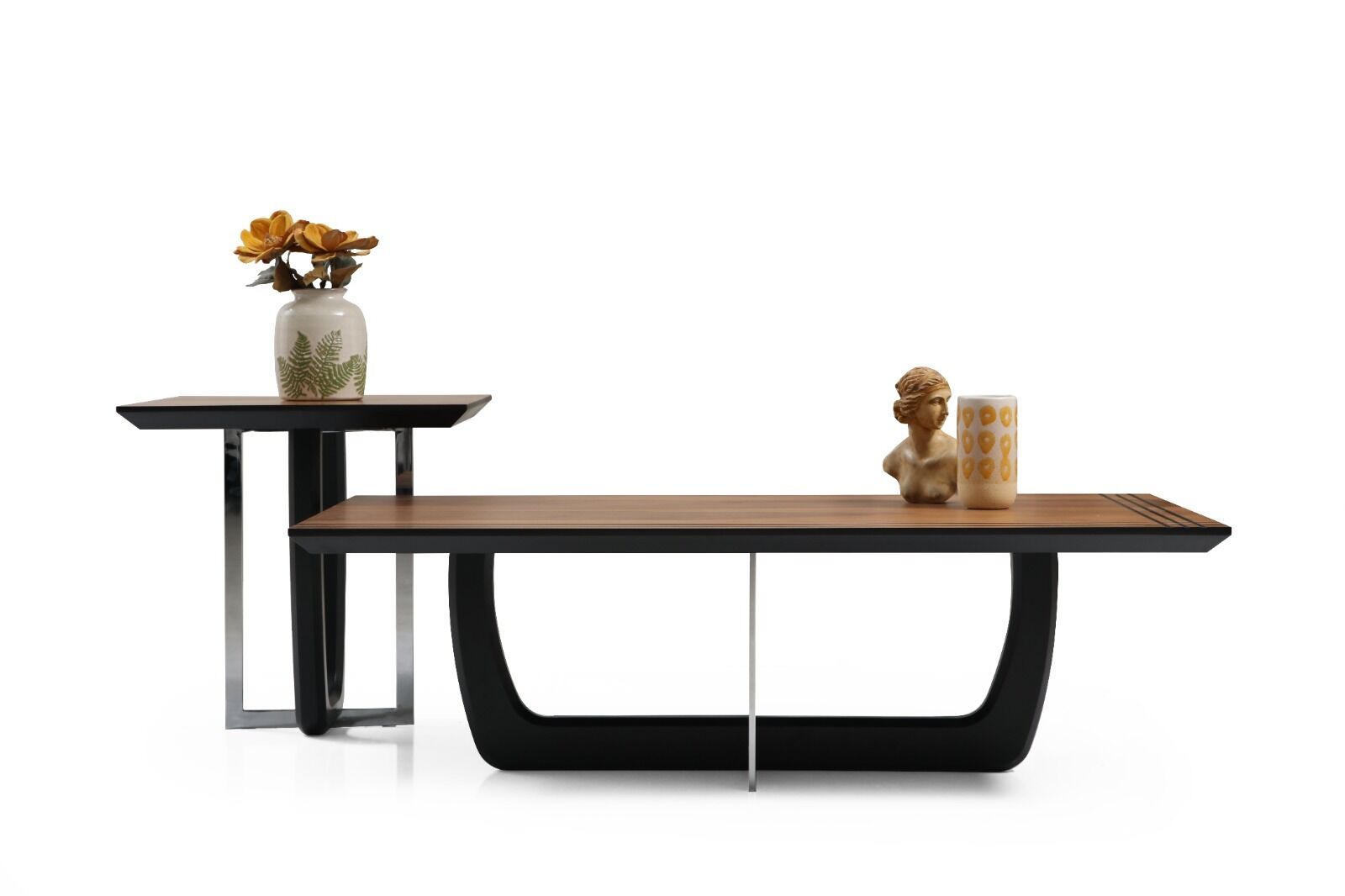 Ceviz tonlu üst tablası ve siyah MDF-metal ayaklarıyla modern ve şık bir görünüm sunan Taycan Orta Sehpa, geniş yüzeyi ve fonksiyonel tasarımıyla salon, oturma odası veya ofis gibi alanlarda hem dekoratif hem de kullanışlı bir tamamlayıcıdır.